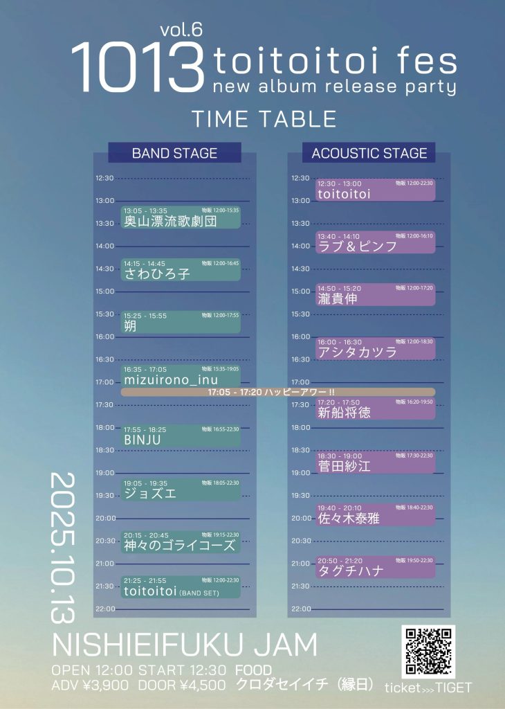 1013 vol. 6 『toitoitoi fes』new album release party